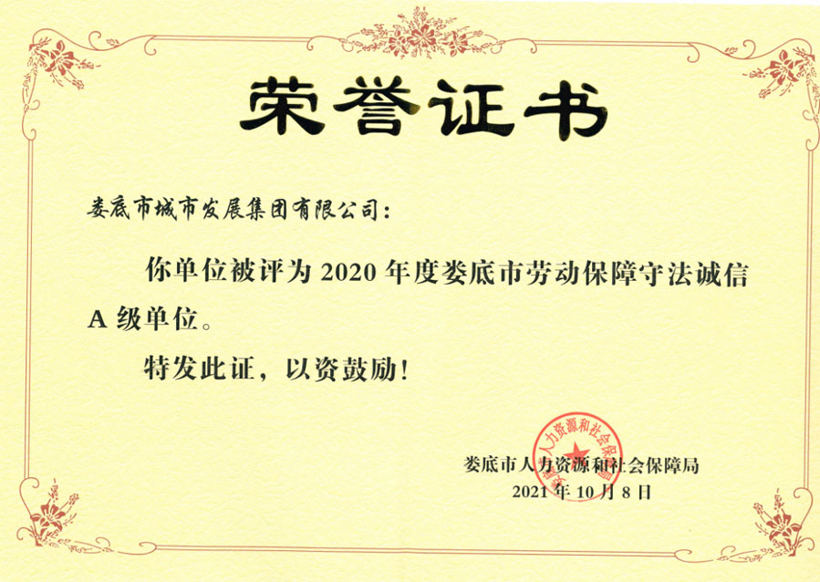 近日,婁底市人力資源和社會保障局公布了2020年度婁底市市本級用人單位勞動保障守法誠信等級評價結果,婁底市城市發(fā)展集團有限公司被評為“勞動保障守法誠信A級單位”。此次,婁底市千余家單位通過用人單位自主申報、市勞動監(jiān)察局初審、征求相關部門意見、市人社局審核、網(wǎng)上公示后共優(yōu)選出45家A級單位。這也是市城發(fā)集團連續(xù)第四年獲評此榮譽。