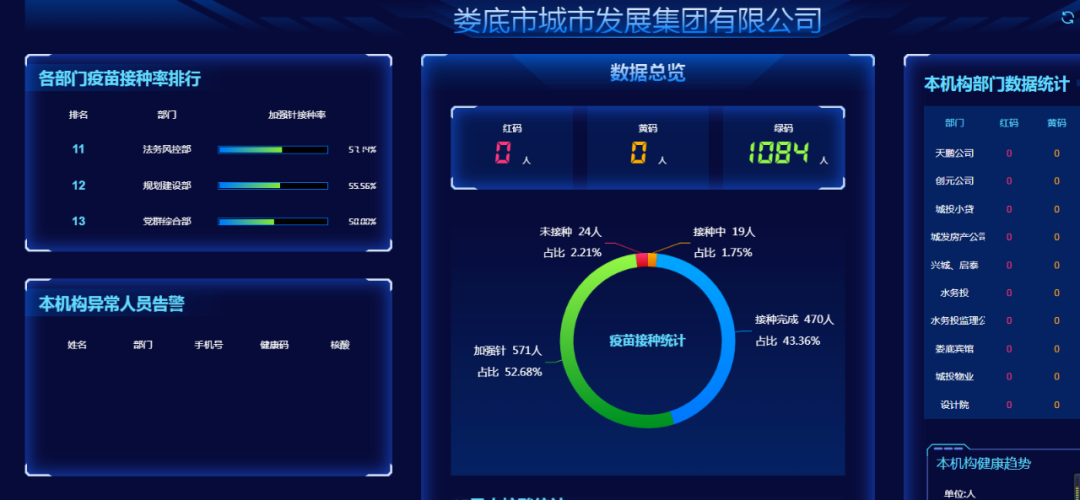 其次,各部室、子公司及項目工地全面實行網(wǎng)格化管理,建立健全了工作人員日常健康管理臺賬、重點監(jiān)控人員臺賬、入離婁人員臺賬等疫情防控工作管理臺賬,同時集團公司與移動公司合作,利用精準(zhǔn)防疫支撐平臺實時掌握防疫工作動態(tài),梳理和解決相關(guān)工作問題。各單位防疫聯(lián)絡(luò)員每日下午定時上報相關(guān)臺賬至集團公司匯總,雖然每日重復(fù)著同樣的工作,但卻容不得絲毫松懈。全體工作人員主動配合上報有關(guān)情況,聯(lián)絡(luò)員第一時間發(fā)現(xiàn)問題及時溝通對接,疫情防控工作領(lǐng)導(dǎo)小組辦公室不厭其煩答疑解惑,上下一心織牢織密疫情防控網(wǎng)。